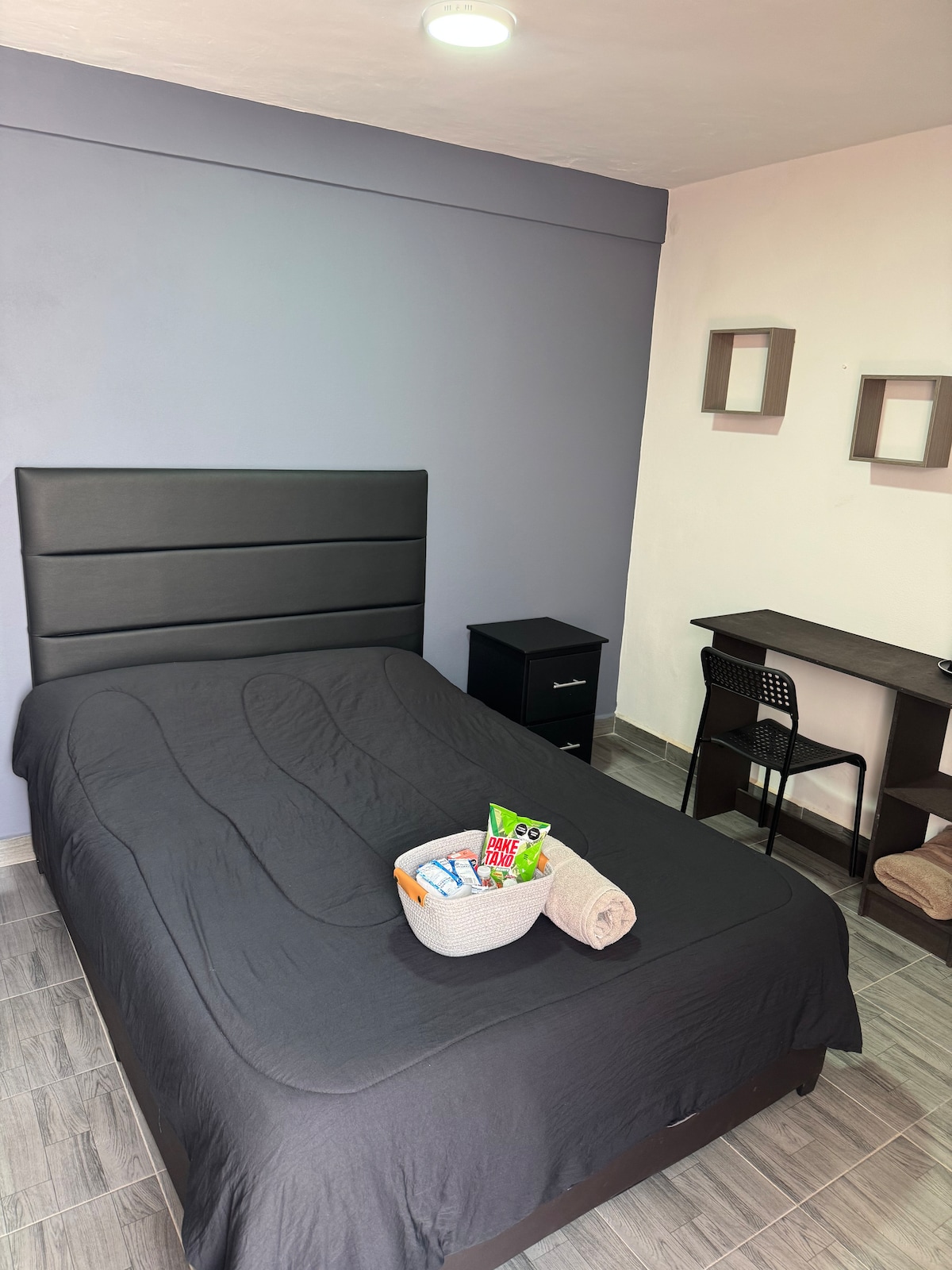 Espace unique et idéal pour vous Entièrement indépendant avec lit double, salle de bain complète, réfrigérateur et kitchenette. Il est idéal pour 1 ou 2 personnes, espace très lumineux et avec wifi idéal pour travailler à la maison. Profitez de la télévision par câble, lumière et eau chaude toute la journée et avec une belle vue en étant à l'étage. Super emplacement, avec navette, à une rue du métrobus. Il se trouve à 20 min du terminal capu, Oxxo à 5 min à pied, des pharmacies et du marché à 3 rues.