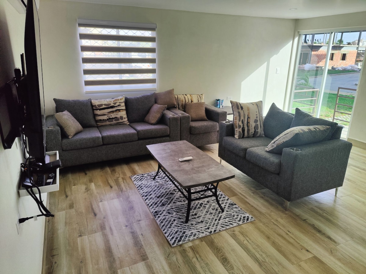 Votre appartement idéal pour une escapade de 2 niveaux avec 3 chambres et 2,5 salles de bain dans une communauté fermée derrière le centre commercial Buccoo Strip Mall près de Shirvan Road. Piscine partagée sur le complexe, vue sur le balcon et à quelques minutes en voiture de Buccoo Bay et de Mt Irvine Beach et du parcours de golf du mont Irvine. Découvrez tous les attraits des plages, du golf, de l'équitation, des promenades en bateau à fond de verre, des courses de chèvres du dimanche de Pâques Buccoo, des fêtes de rue à l'école du dimanche, de la cuisine locale alléchante et de l'expérience d'escapade dans un tout nouvel appartement confortable ! !