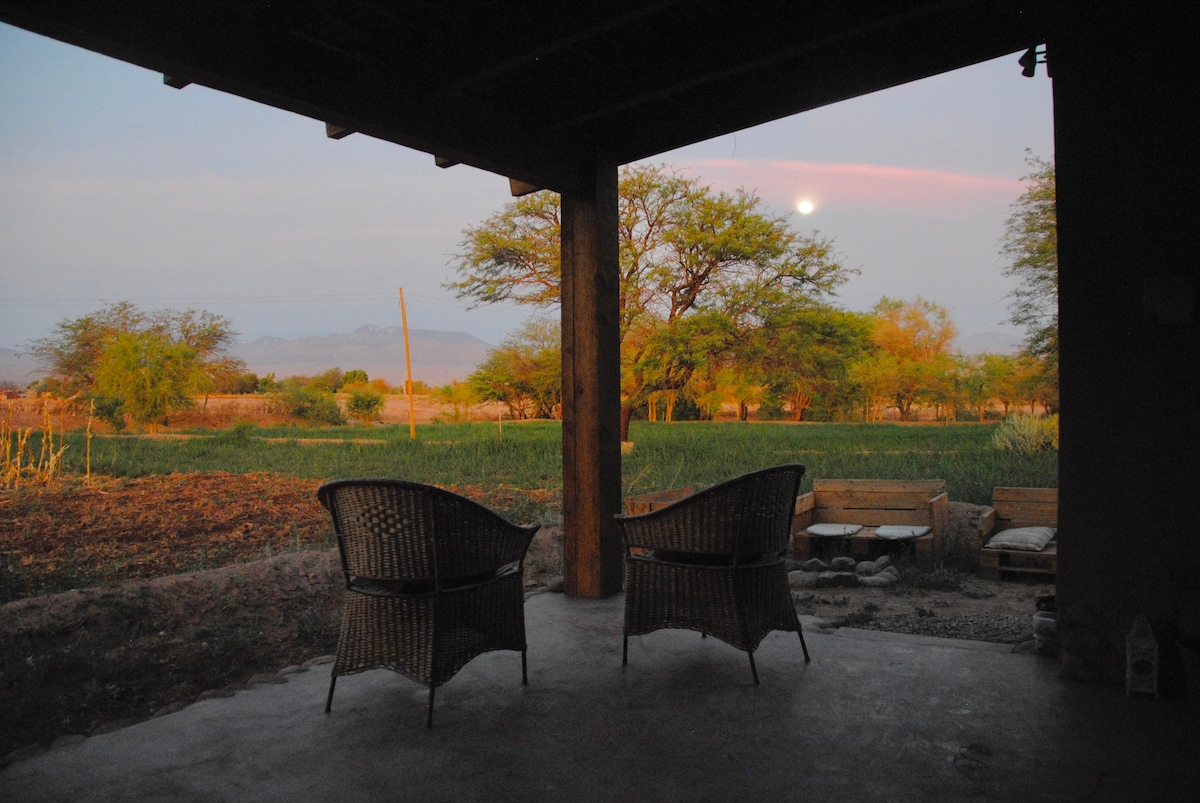 Cabaña privada alejada del centro turistico, a 3,5 kms Estilo autóctono de San Pedro de Atacama (Adobe), donde la vista descansa en lo verde y tranquilidad del oasis. Private Hütte 3,5 km entfernt vom touristischen Zentrum. Im einheimischen Baustil der San Pedro Kultur ( in Adobe), im Grünen und der Ruhe der Oase. Private cabin away from the tourist center, 3.5 kms Native style of San Pedro de Atacama (Adobe), where the view rests in the green and tranquility of the oasis. 100% sun energy