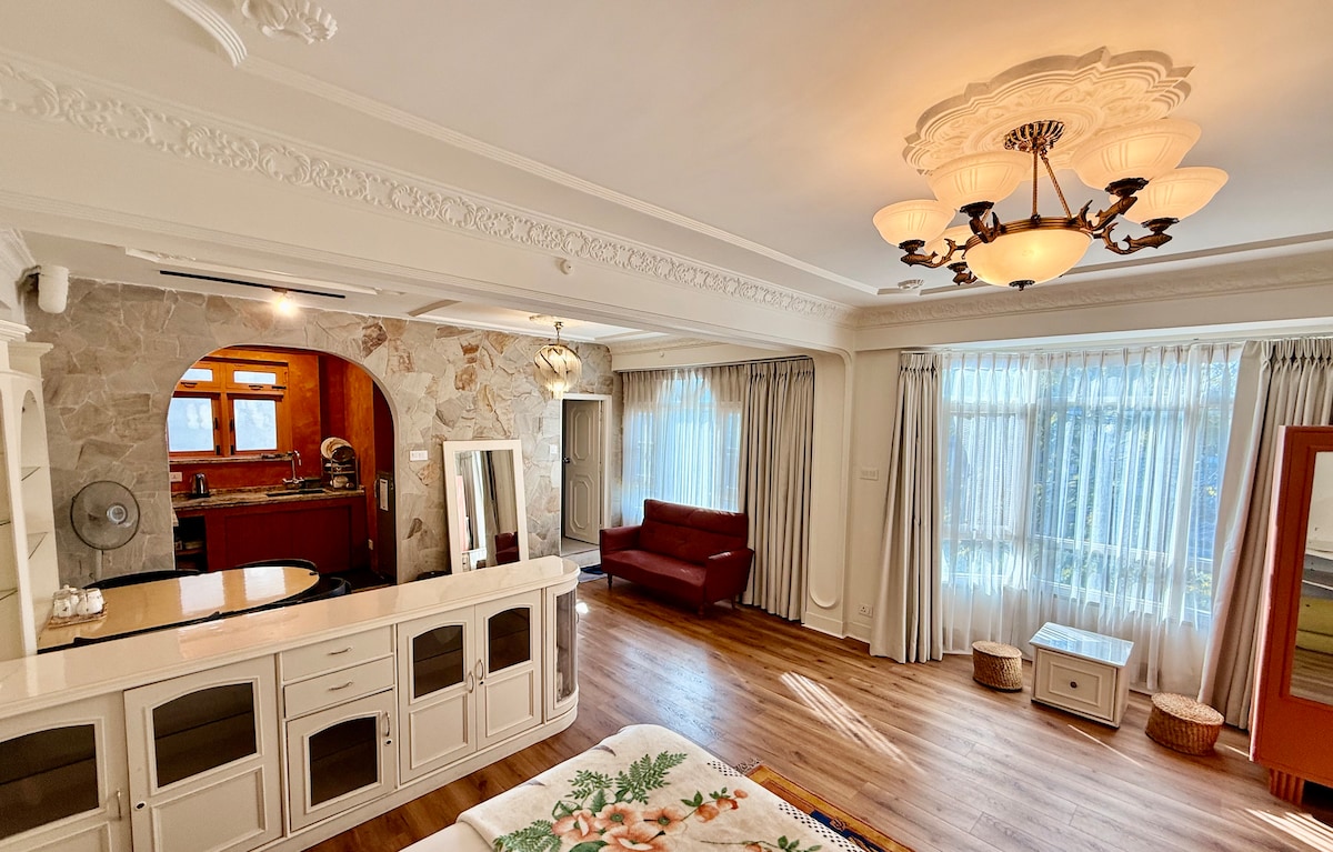 Wake up to Himalayan sunrises in this bright and beautiful studio apartment, where floor-to-ceiling windows frame panoramic views. Located on higher floors for privacy, this unit offers a stunning view of the Swayambhu Nath through large windows, blending Kathmandu's urban energy with natural serenity. Enjoy modern comforts including a smart TV, air conditioning, and a kitchen with premium appliances.