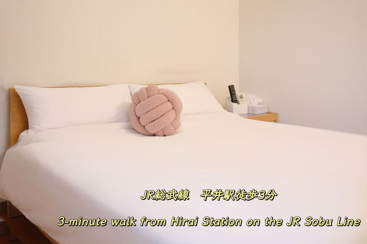 Cette propriété privée est située dans le quartier de Katsushika, où règne une atmosphère de centre-ville, loin de l'agitation du centre-ville, vous pourrez profiter d'un sommeil de qualité et vous serez sûrement soulagé de votre fatigue de voyage ! Tous les appareils électroménagers tels que les climatiseurs et les réfrigérateurs ont été remplacés par de nouveaux. Bien qu'il y ait une superficie totale de 70 ㎡ avec 3 chambres, un salon, une salle à manger et une cuisine, la capacité maximale est de 6 personnes. Nous avons délibérément créé un espace de vie confortable en ne plaçant qu'un lit double dans chacune des 3 chambres du 2e étage. Si vous avez 6 personnes ou plus, veuillez nous contacter à l'avance et nous vous fournirons des lits pliants. Il y a aussi un supermarché et un supermarché ouvert 24 heures sur 24 à moins de 10 minutes à pied, ce qui facilite l'achat de produits de première nécessité, etc., et vous permet de rester confortablement même pendant de longs séjours. De plus, il y a un parking gratuit sur le site, où vous pouvez garer 2 voitures légères ou 1 voiture ordinaire. Vous pouvez également répondre de manière flexible aux excursions en voiture et aux voyages d'affaires. Il y a plusieurs arrêts de bus à moins de 5 minutes à pied, et vous pouvez vous rendre directement à la gare JR Kanamachi, à la gare Kameari et à la gare Keisei Kanamachi en 20 minutes environ en bus. Vous pouvez accéder au centre-ville en moins d'une heure depuis la gare. De la gare de Kanamachi 30 minutes à Tokyo Station, 40 minutes à Ginza Station, 50 minutes à Shinjuku Station 60 minutes jusqu'à la gare de Shibuya 60 minutes de l'aéroport de Narita, 70 minutes de l'aéroport de Haneda