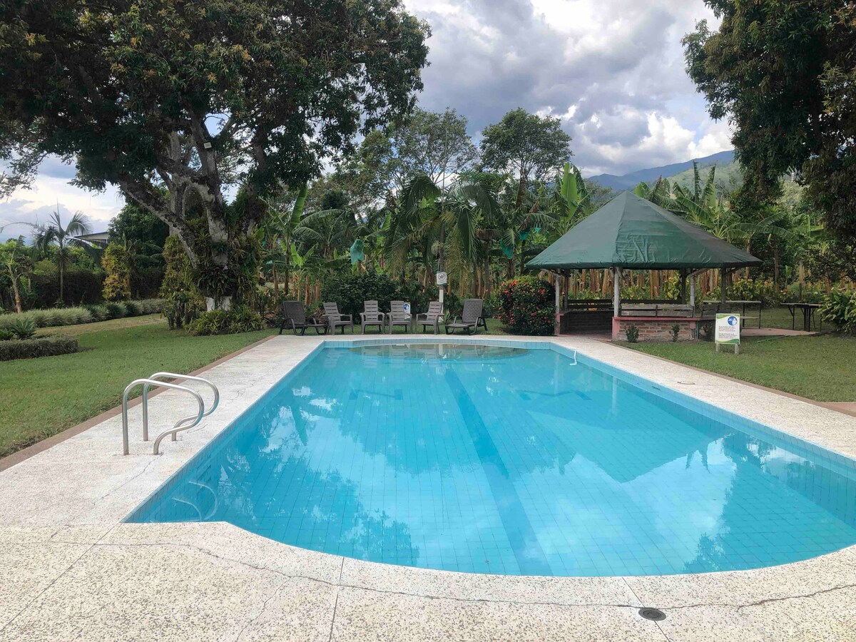 Un lugar para desconectar, relajarse, recargar energías y crear recuerdos inolvidables, lejos del ruido. Respira calma y siéntete como en casa en nuestra finca privada, un refugio pensado para compartir momentos especiales en familia o con amigos. Después de recorrer el Eje Cafetero, encuentra aquí el descanso que mereces: naturaleza, silencio y amplias zonas verdes en un entorno seguro. Estamos cerca del Parque del Café, Panaca, Parque Los Arrieros y Montenegro. Será un gusto atenderte .