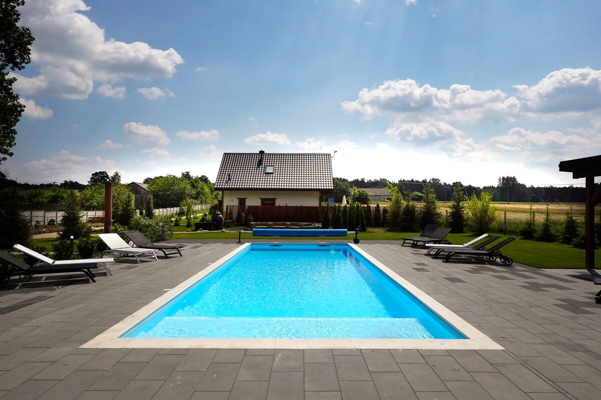 Zatopiony wśród złotych pól i zieleni stuletni dom kusi położeniem z dala od zgiełku miasta i prawdziwie wiejskim klimatem, przy jednoczesnej bezpiecznej bliskości siedzib ludzkich. Dwie sypialnie mogące pomieścić łącznie 8 osób (max 11 na dodatkowych kanapach), stara stodoła, w której mieści się grill i piec do pizzy, prywatny ogrodzony teren 1,9 ha i cisza jak makiem zasiał sprawiają, że jest to idealne miejsce dla rodzin, przyjaciół czy par szukających prywatności.