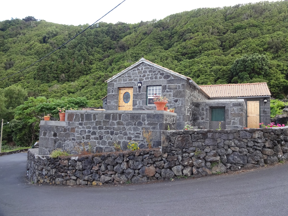 Souhaitez-vous vivre dans un chalet en pierre, rustique, mais avec une ambiance et un intérieur modernes, confortable, romantique, idéal pour deux personnes avec une vue imprenable ? Vous êtes au bon endroit, c'est ici. Il y a une terrasse avec des chaises longues, un barbecue en pierre, la vue complète sur l'île de São Jorge et le canal. De son côté gauche, les falaises des paroisses de São Roque, Praínha et Santo Amaro do Pico, les vagues déferlantes et les oiseaux flottants ; un coucher de soleil dont on tombe amoureux… Cette maison fait partie d'un petit complexe familial, où il y a un restaurant appelé Magma, une épicerie, une salle de yoga et une piscine chauffée. Le séjour dispose d'une porte coulissante en verre qui ouvre la nature intérieure et la vue. Qu'attendez-vous ?