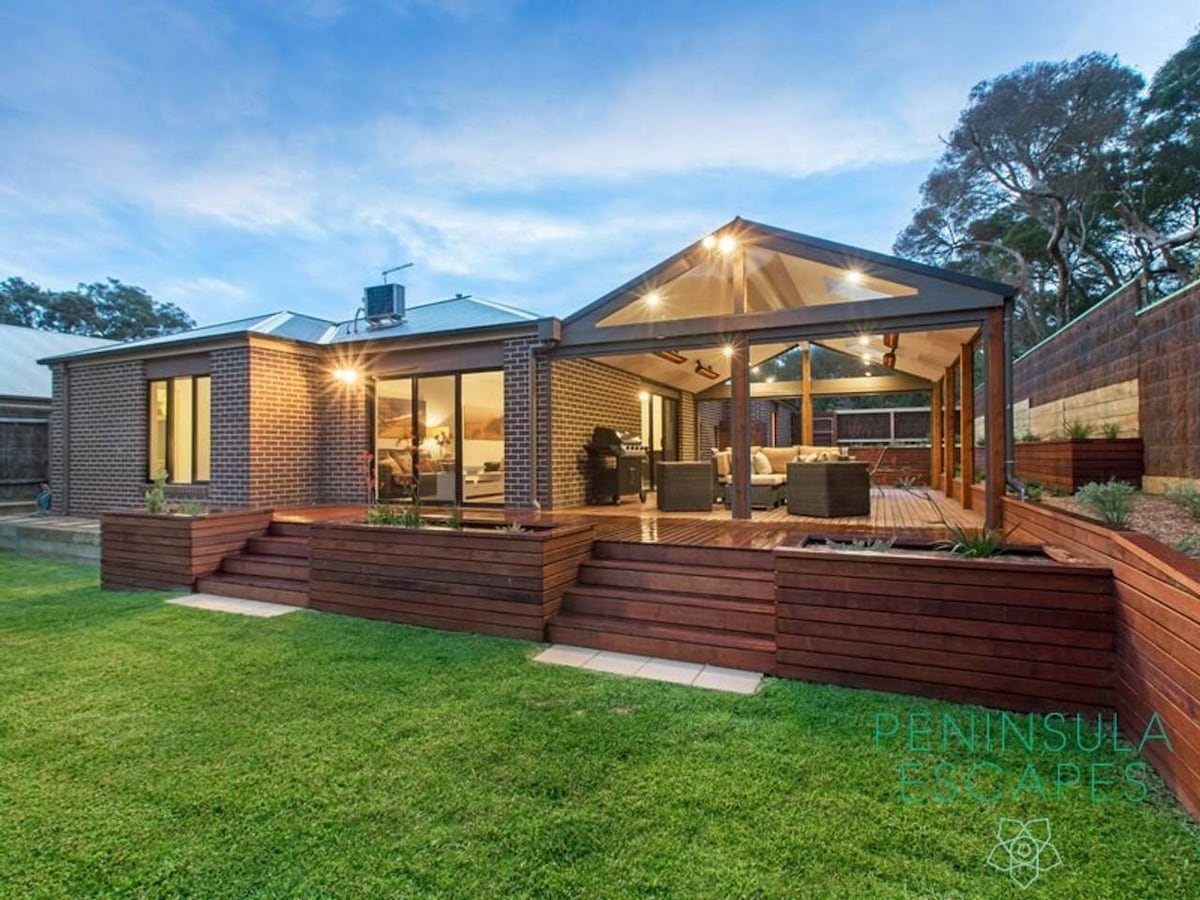 Située à seulement 100 m de la plage principale d'Anglesea, notre maison est parfaitement située pour votre escapade côtière. Ce joyau caché est niché avec un grand espace extérieur pour se détendre en toute intimité, et également à quelques minutes à pied d'un excellent café. La maison se compose de 3 chambres (2 lits Queen Size + 1 lit King Size). Remplie d'art, de livres, d'un grand canapé confortable et d'une cheminée pour un four à bois sur la nouvelle grande terrasse privée. Nous sommes adaptés aux familles, mais vous demandons de respecter toutes les pièces que nous avons laissées là pour que vous puissiez en profiter.