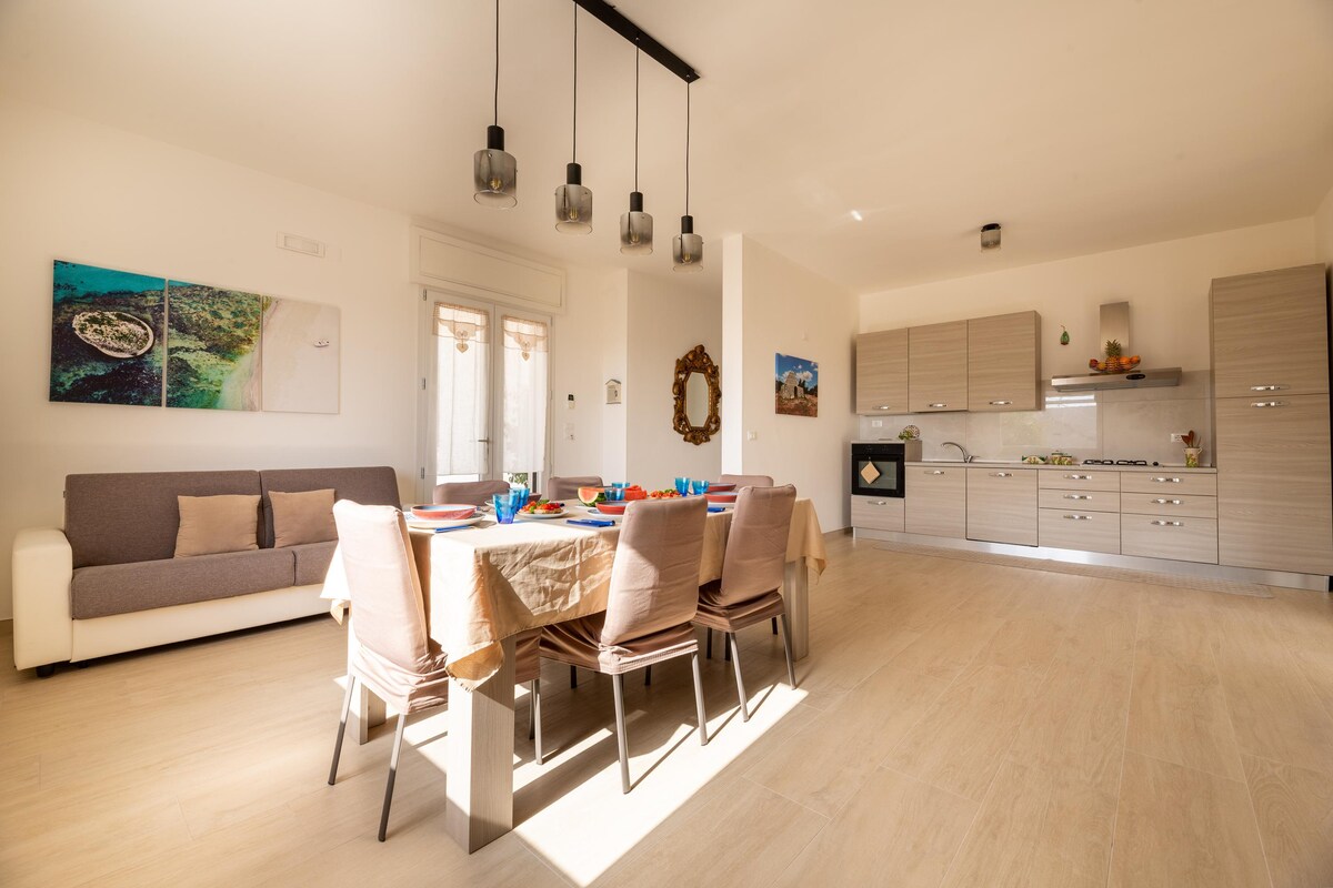 À 70 mètres de la mer, à quelques kilomètres de Gallipoli et Santa Maria di Leuca, le penthouse "Casa Louis" est la solution idéale pour des vacances en couple. Doté d'un environnement unique donnant sur une cuisine moderne ouverte, il s'ouvre sur une grande terrasse équipée, idéale pour les dîners et les moments de détente. Il est idéal pour des vacances reposantes et est tout confort. Et si vous avez oublié la serviette de plage, ne vous en faites pas, nous nous en occuperons !