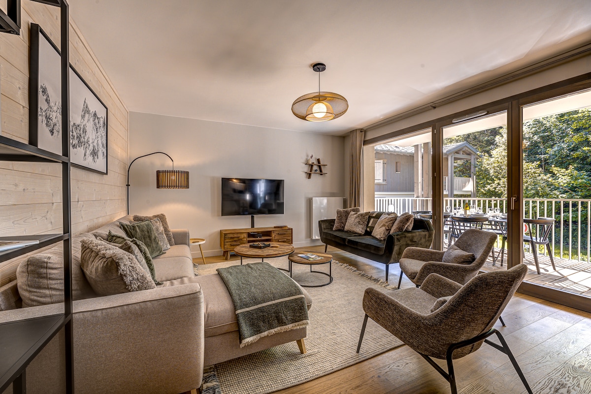 Tel un chalet, ce magnifique appartement offre une vue imprenable sur le Mont Blanc Avec ses 3 chambres, il accueille confortablement jusqu'à 7 personnes. Le grand salon avec sa cheminée est parfait pour des soirées chaleureuses en hiver La salle à manger est également très jolie avec une belle table en bois et la cuisine est équipée pour préparer des bons repas Une excellente option pour des vacances à la montagne en famille ou entre amis, avec tout le confort nécessaire pour un séjour agréable