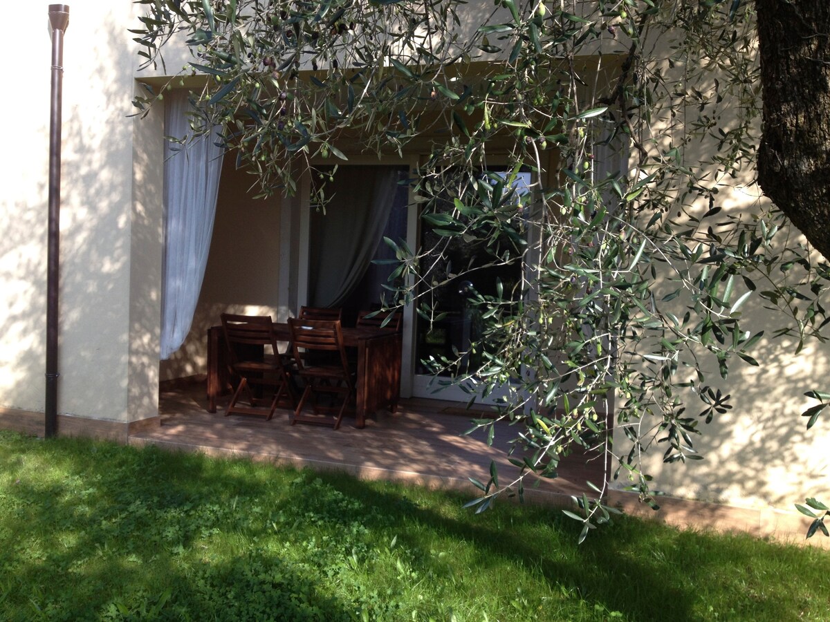 Ampio monolocale (60 mq) in posizione centrale, a 1 minuto a piedi dal castello e dal lago, in tranquillo cortile interno. Pavimento in cotto, angolo cucina in legno di abete/noce e marmo rosso, zona notte separata da tendaggi bianchi. Spazio esterno con tavolo e sedie. Posto auto adiacente ad uso esclusivo. Fermata dell'autobus (Verona-Malcesine) di fronte al viale d'ingresso. Costo extra: 2,00€ / a persona / al giorno per l'imposta di soggiorno, da consegnare in contanti prima della partenza.