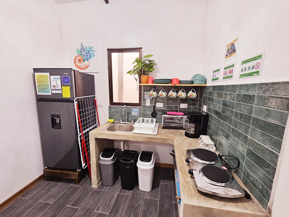 ✨ Kame House — élégance et calme à Tortuguero Profitez du rez-de-chaussée complet, avec la climatisation dans toutes les chambres, l'eau chaude, le café komorebi et l'huile d'olive premium. Nous avons des chauffe-chaussures pour les jours de pluie. Détendez-vous dans la cour intérieure ou contemplez les colibris à l'extérieur. Un espace idéal pour ceux qui recherchent le confort, l'intimité et la nature. 🌿✨