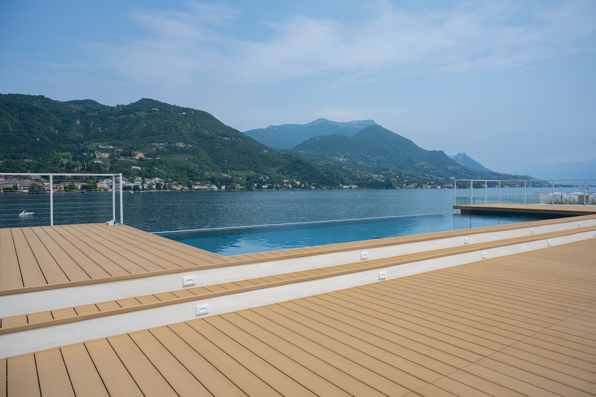Appartement de 54 m² avec accès direct à la piscine et au jardin, avec vue panoramique sur le lac de Garde. Emplacement superlatif et privé. Utilisation du jardin et de la piscine, intimité et détente dans les grands espaces extérieurs. Construction moderne de 2015. Entrée privée et autonome, grand parking. Propreté rigoureuse. Intimité totale. Les petits animaux domestiques sont autorisés.