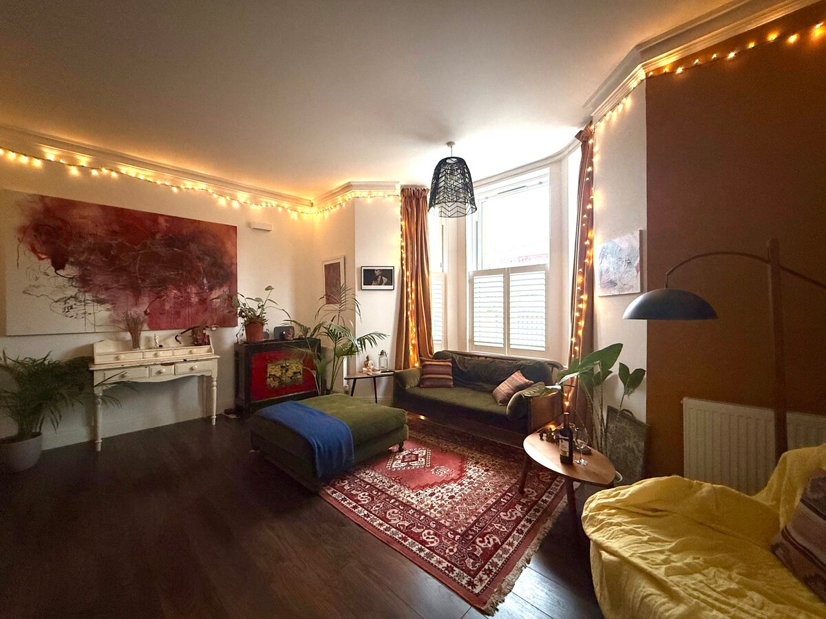 Au dernier étage d'un magnifique pâté de maisons victorien, au milieu des restaurants et bars branchés de Dalston, nichés dans une rue latérale, pleine de lumière naturelle et de plantes, c'est un excellent point de départ pour explorer un endroit où se retirer et se détendre ! ! Le salon indépendant se transforme en une deuxième chambre confortable avec un lit futon double (avec un matelas profond et confortable). Ou descendez les stores occultants et chargez le projecteur pour en faire une excellente salle de cinéma ! 1 ou 4 personnes, c'est une fabuleuse !