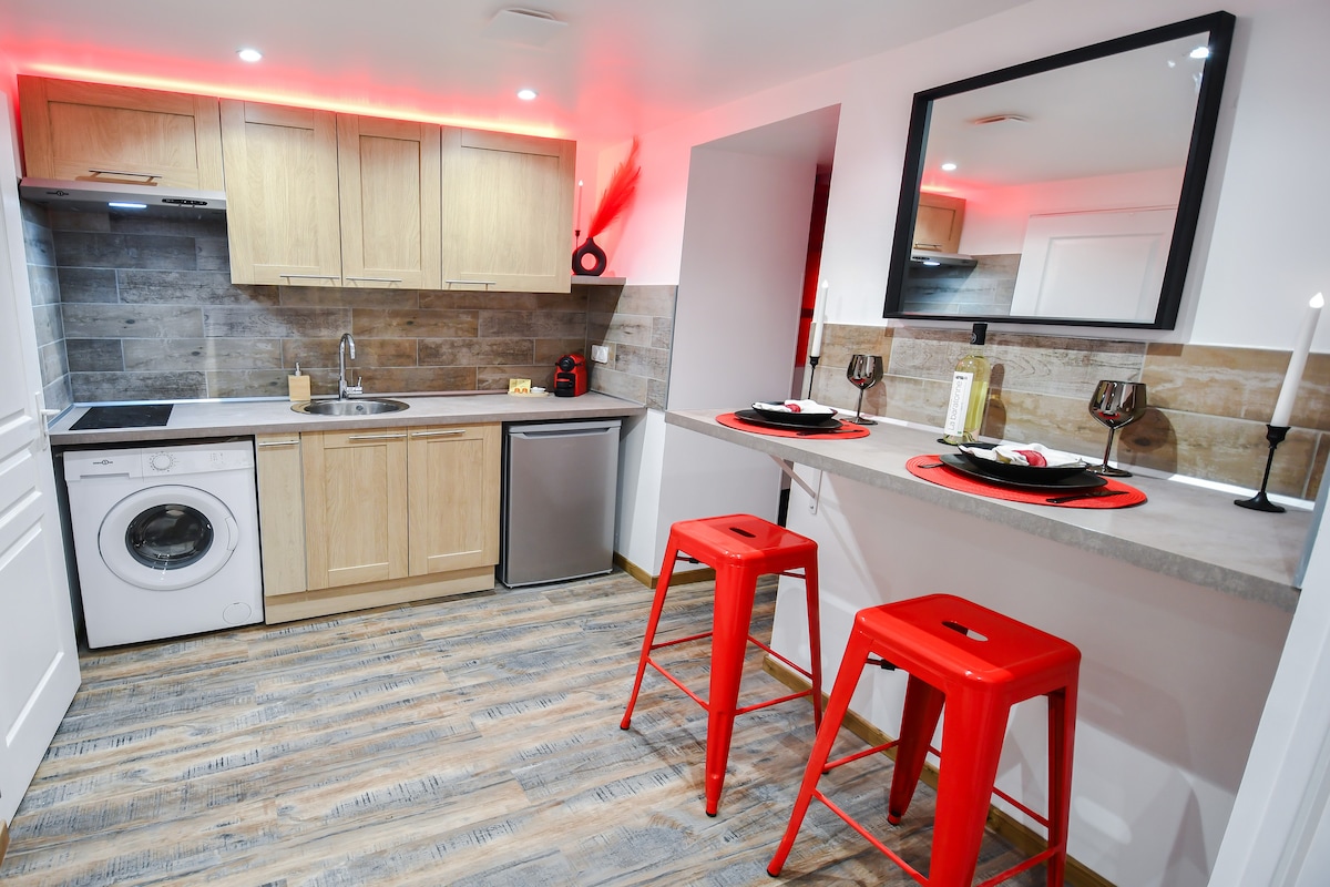 âš Bienvenue dans notre Love Room, un cocon sensuel pensĂ© pour les amoureux. âš Plongez dans une ambiance tamisĂ©e grĂące aux jeux de lumiĂšre , dĂ©tendez-vous dans la balnĂ©o , laissez-vous tenter par la balançoire et accessoires Ă©rotiques⊠Profitez dâun lit King Size, TV , barre de son , dâune cheminĂ©e chaleureuse et dâune petite cave Ă vin. Le petit dĂ©jeuner est inclus. Terrasse ensoleillĂ©e et un parking gratuit. DiscrĂ©tion et intimitĂ© garanties, accĂšs 100% autonome . Une expĂ©rience inoubliable.âš