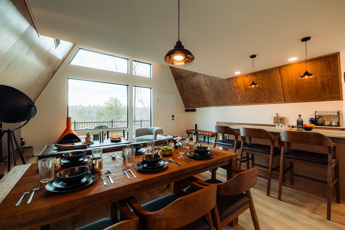 Skiing/Tubing season is almost around the corner! Escape to the "Eclipse", a Scandinavian-inspired modern cabin nestled on .5 acres overlooking endless woods. The Eclipse offers thoughtful amenities such as a striking gas fireplace, a fun arcade console, disc golf, laser tag, and a mouth watering popcorn cart for movie nights. Unwind in the hot tub under the stars or bask in the LED-lit A-frame charm. At 'Eclipse', all stars align for a truly magical stay.