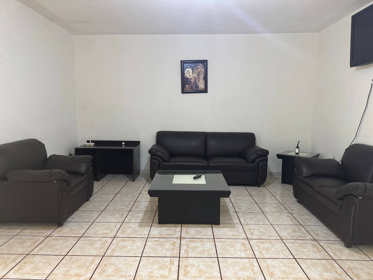 Découvrez Yahualica, le joyau caché des hauteurs de Jalisco, nous avons l'essentiel pour votre repos ; central ! Nous sommes situés à un demi-pâté de maisons de la place principale et derrière la paroisse San Miguel. Décoration agréable, tout est tout neuf ! ! ! Il est IMPORTANT que tu saches que la deuxième chambre (lit double) ne sera activée que si ta réservation est faite pour « 4-5 personnes » si tu réserves uniquement pour 1-3 personnes « tu n'auras accès qu'à la première chambre lit queen size »