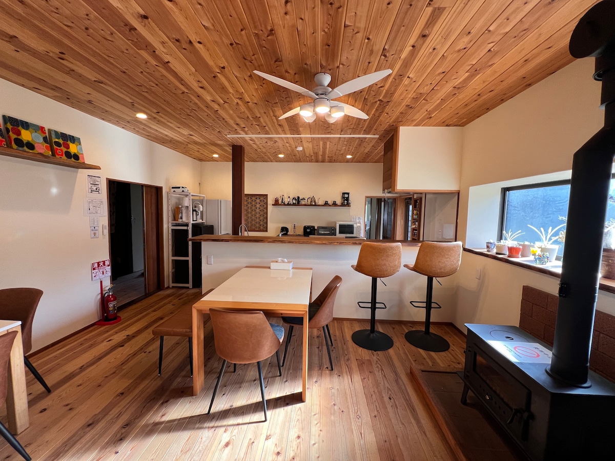 Apprenez du passé et du présent avec un foyer, un sauna et une vieille maison historique [Awai Seikatsu] Les poutres et les piliers solides, le magnifique design du plafond en treillis, la salle irori qui a hérité du temps de détente du passé et la véranda où vous pouvez voir les saisons, sont toutes des choses qui sont difficiles à trouver maintenant. Il y a beaucoup de choses « nostalgiques mais nouvelles ». C'est un espace luxueux où vous pouvez passer du temps avec vos amis, collègues et famille dans un style privé. Parler en se réchauffant près de la cheminée, se réunir à une grande table pour cuisiner ensemble, découvrir de la musique, des livres et de l'art inconnus, sortir pour une petite balade à vélo, sentir le grand air sur votre peau ou se remettre en forme dans le sauna... Ressentez la profondeur de l'histoire au plafond et ressentez le moment où votre cœur tremble ! L'[Awai Seikatsu] que vous vivez ici vous permettra de redécouvrir la vie quotidienne d'une manière insolite.