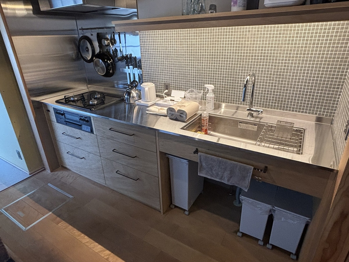 Décembre 2025 OUVERT ! Il s'agit d'un hôtel indépendant avec un salon/salle à manger spacieux et des chambres de style japonais. L'établissement est idéalement situé en plein cœur de Tokyo et d'Osaka. Il y a des châteaux, des bains publics, des tramways et des restaurants japonais à proximité, et selon la saison, vous pourrez profiter des cerisiers en fleurs, des feuilles d'automne et des feux d'artifice, et découvrir la culture japonaise. La plupart des choses dont vous avez besoin pour la vie sont à proximité et la gare est à proximité, il est donc adapté pour des séjours de longue durée.