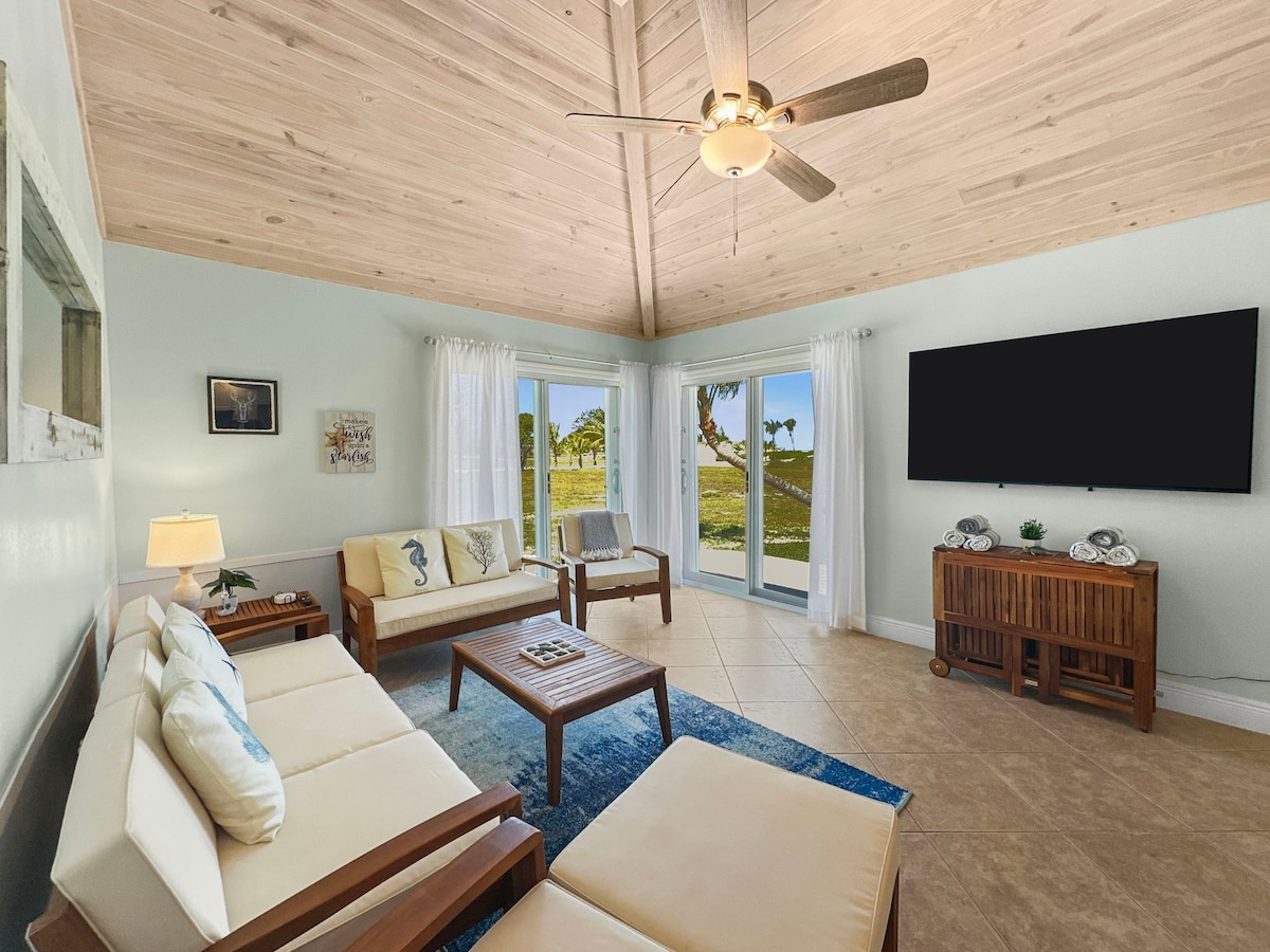Bienvenue à la Retraite du rez-de-chaussée, un logement spacieux et autonome construit avec une expertise professionnelle et conçu pour le confort total des voyageurs. Situé dans le paisible Green Turtle Estates, vous êtes à quelques pas de la spectaculaire Ocean Beach et à quelques minutes en voiturette de golf des eaux plus calmes de Coco Bay. Profitez d'un accès direct au patio privé et à la pelouse, rendant la vie sur l'île facile et accessible. Remarque : cette annonce concerne UNIQUEMENT l'unité du rez-de-chaussée.