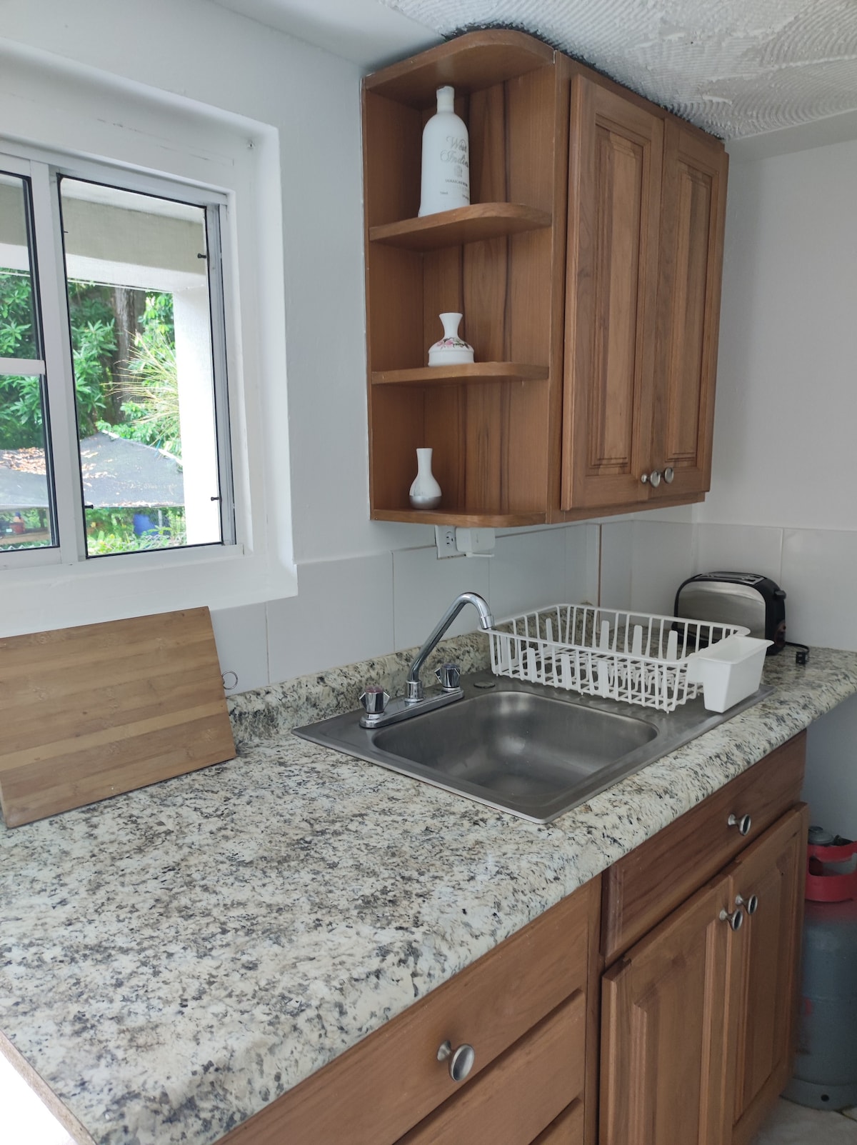 Bonjour ! Chambre double avec climatisation (pour un petit supplément), télévision par câble, salle de bain avec eau chaude (soumise à l'énergie solaire), mini cuisine séparée avec cuisinière, réfrigérateur, micro-ondes, grille-pain et un patio pour se détendre avec une bière fraîche ! « Hideaway » est autonome avec sa propre porte d'entrée. Il est permis de fumer sur le patio ou dans la cour (420 amical aussi) :-)