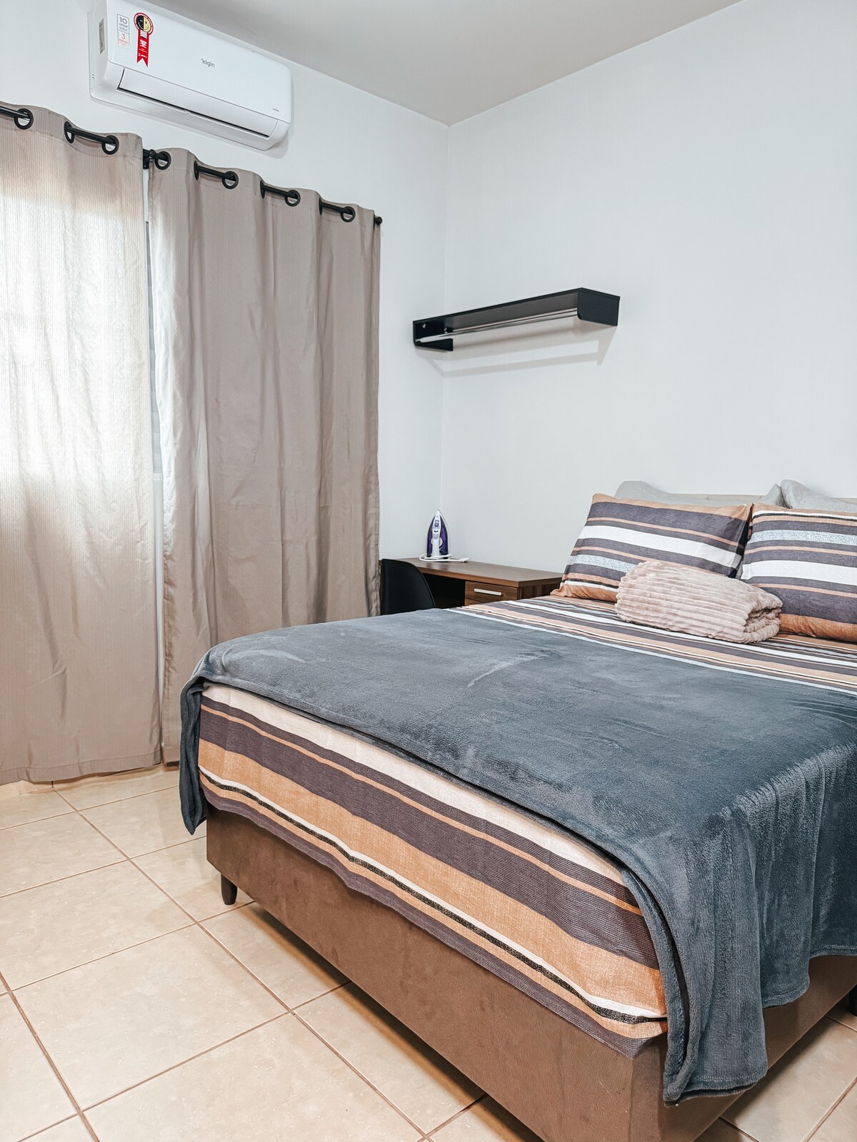 Aconchego et praticité ! L'espace peut accueillir jusqu'à 4 personnes, 1 suite avec lit double et climatisation, 1 chambre avec lit simple et climatisation, salon avec canapé-lit escamotable, cuisine, salle de bains sociale, garage pour 2 voitures. L'emplacement est privilégié : proche d'un supermarché, d'une boulangerie, d'un restaurant, d'une pizzeria et d'une gare avec commodité. À 1,8 km de la gare routière, 4,9 km de l'aéroport et 4,4 km du centre commercial – Idéal pour les moments de repos, de voyage ou de travail, alliant confort, facilité d'accès et confort.
