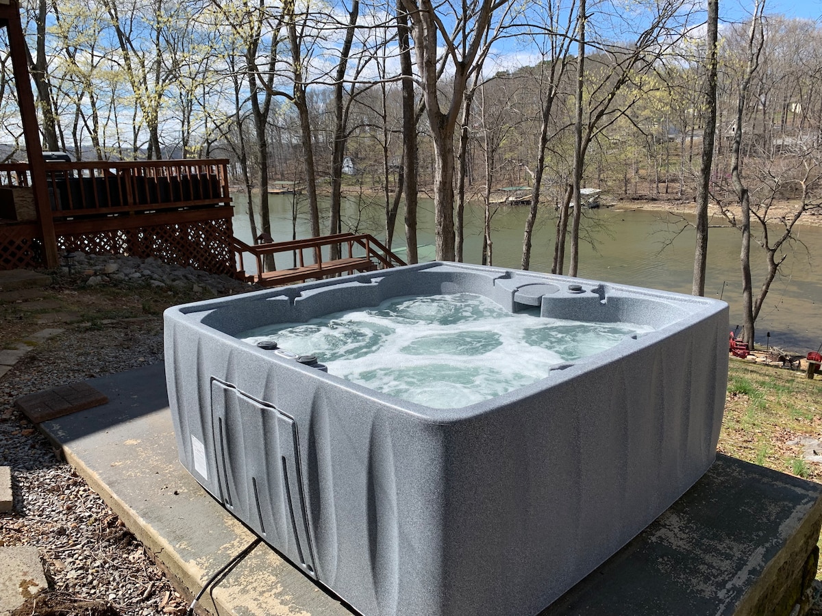 Cet endroit a tout pour plaire. De la vue et de l'accès imprenables sur le lac, un quai privé, un espace pour plusieurs familles pour dormir et des sièges pour dîner. Avons-nous mentionné que nous avons une place supplémentaire à notre quai pour votre bateau ? Nous avons une terrasse incroyable, des jouets aquatiques, de nombreux jeux de société et un foyer. Notre maison se trouve juste en face de la baie du magnifique Lake Barkley Resort où vous pourrez jouer au golf sur 18 trous, emmener les enfants faire de l'équitation ou vous détendre avec quelques cocktails au restaurant ou au bar.