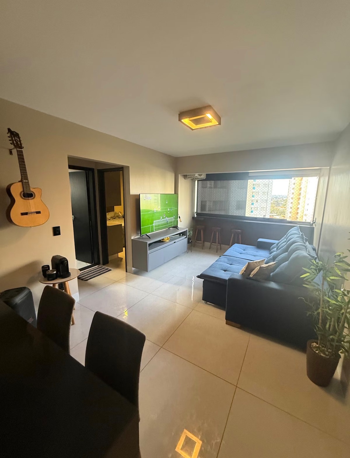 Le Flat a une architecture signée par l'un des professionnels les plus renommés de Goiânia. L'idée est que vous puissiez vous sentir chez vous pendant votre séjour. Tout est automatisé ; lumières, rideaux, TV, climatisation qui offrent confort et raffinement, il suffit de demander à Alexa. Écoutez de la musique, regardez plus de 1 600 chaînes ouvertes et fermées. Prenez une bonne douche avec une douche généreuse. Prenez des photos et détendez-vous sur le balcon avec une vue sensationnelle sur le coucher du soleil et un plafond en acrylique.