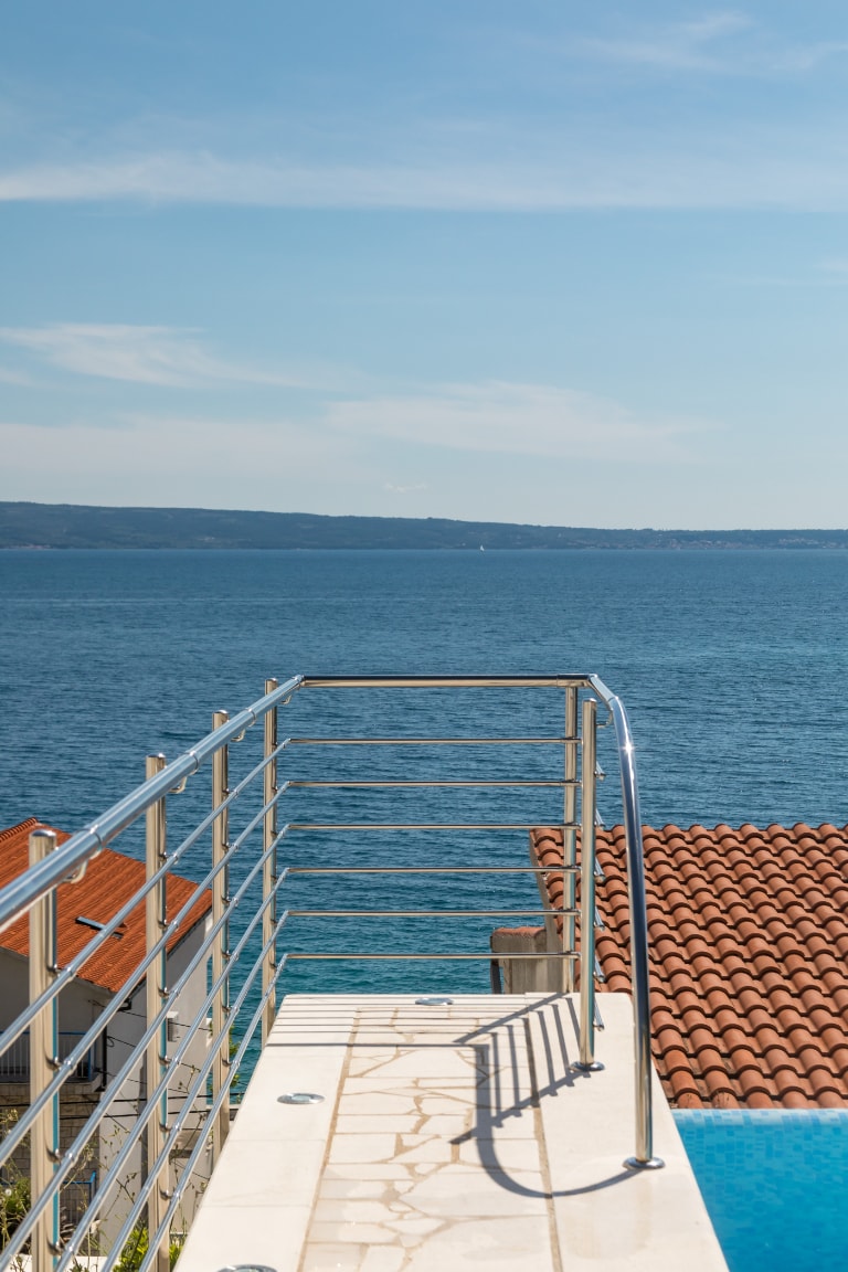 Appartement de luxe avec accès à une piscine chauffée, remplie d'eau de début avril à fin octobre. La piscine dispose d'un puissant système de nage à contre-courant, vous permettant de nager à l'infini sans toucher le mur. Si les deux appartements (Est et Ouest) sont loués, toute la maison et la piscine sont réservées à votre groupe (jusqu'à 12 personnes). Profitez de la vue magnifique sur la mer depuis la terrasse autour de la piscine.