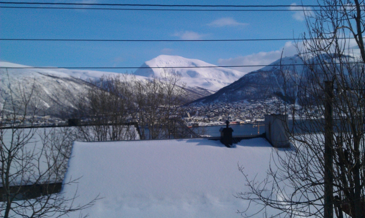 Appartement avec vue imprenable sur les fjords, les montagnes et la vie urbaine, au centre de Tromsø. L'appartement dispose d'une chambre avec un lit double, un salon, une cuisine et une salle de bain. L'appartement est situé au centre en termes de shopping, de café, de restaurant et de vie nocturne. La grande majorité des lignes de bus passent également par le pâté de maisons.