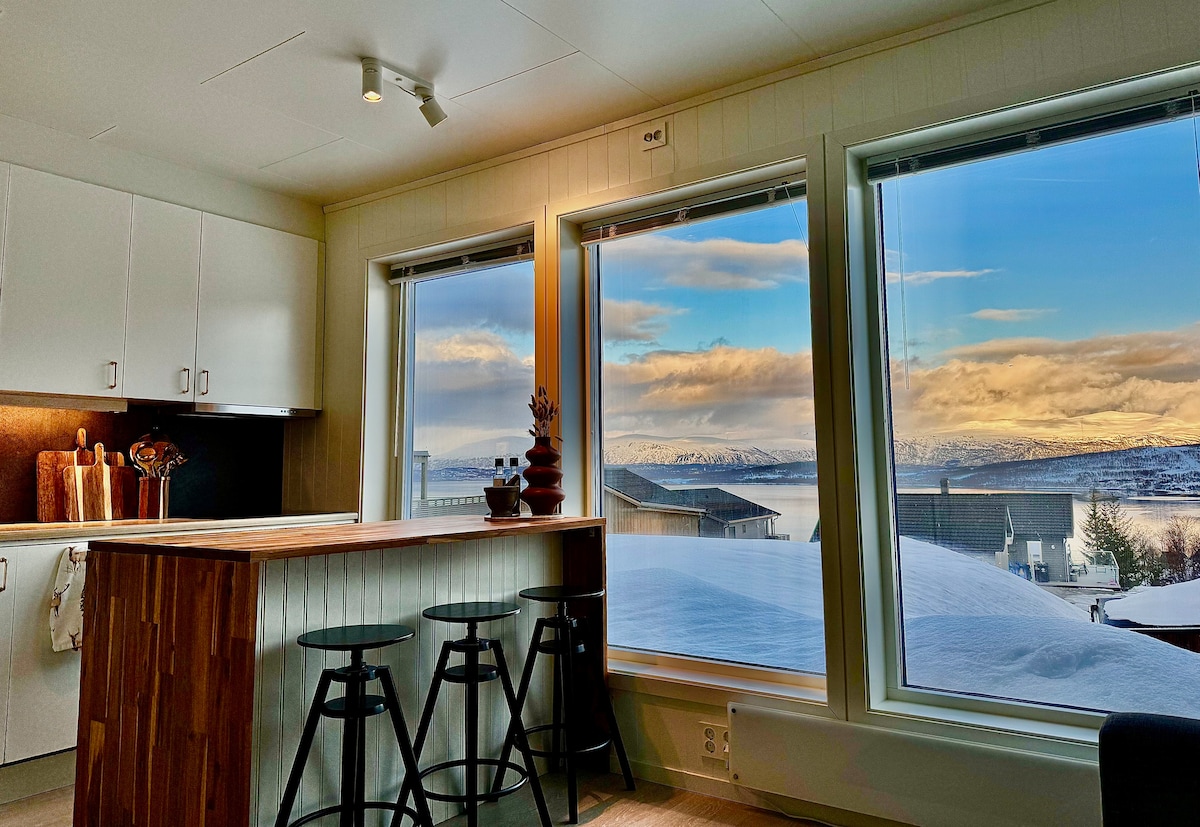 Cet appartement a été récemment rénové, et il est proche des escaliers Sherpa qui montent jusqu'à la montagne, il est proche du téléphérique et de la cathédrale arctique et à un court trajet en bus de la ville. Cet appartement dispose d'un chauffage au sol et dans la salle de bain. Nous pouvons également venir vous chercher à l'aéroport moyennant des frais supplémentaires de 250 NOK (cela doit être organisé à l'avance).