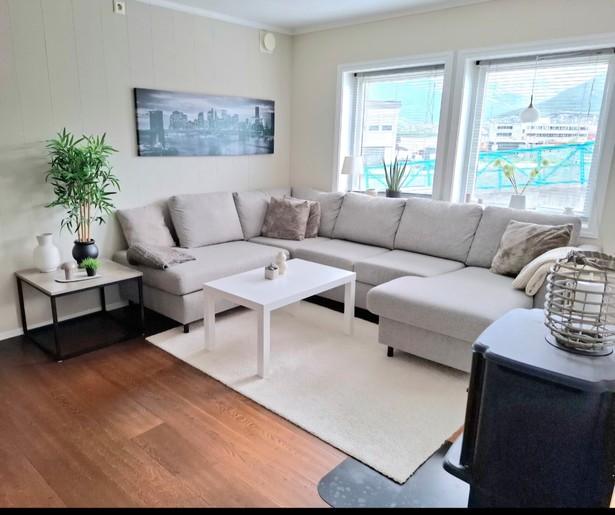 Bienvenue dans notre charmant appartement avec une vue magnifique, situé dans l'une des rues calmes mais centrales de Tromsø. À seulement 5-7 min à pied du centre de Tromsø. Il est proche de l'arrêt de bus, de la zone de ski, de la piscine, de la salle de sport, des visites d'aurores boréales, des magasins et des terrains de jeux extérieurs, des cafés et des restaurants sont juste à côté. Que vous soyez ici pour explorer l'Arctique, admirer les aurores boréales ou simplement vous détendre, notre maison est le point de départ idéal pour votre séjour.