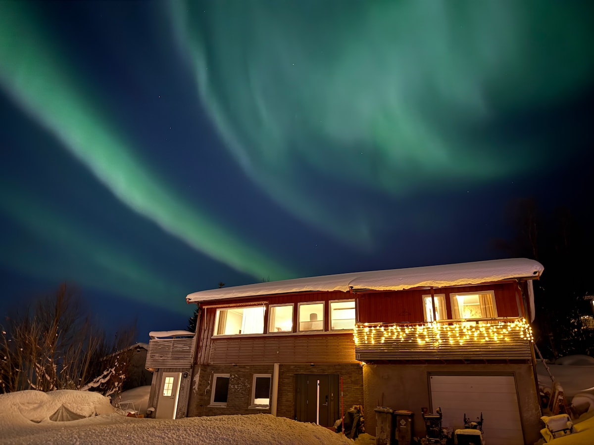 Trouvez la paix et la détente dans notre hébergement unique ! 🏡 À seulement 7 kilomètres du centre-ville de Tromsø, vous trouverez notre maison idyllique dans un cadre rural. Profitez d'une vue panoramique imprenable et découvrez la nature à votre porte. – Charme rural et environnement paisible – Vue spectaculaire sur Kvaløya – Aurores boréales depuis la terrasse (si le temps le permet) – Maison spacieuse et bien équipée – Épicerie à proximité – Parking gratuit et bonnes liaisons de bus Je vous en prie !