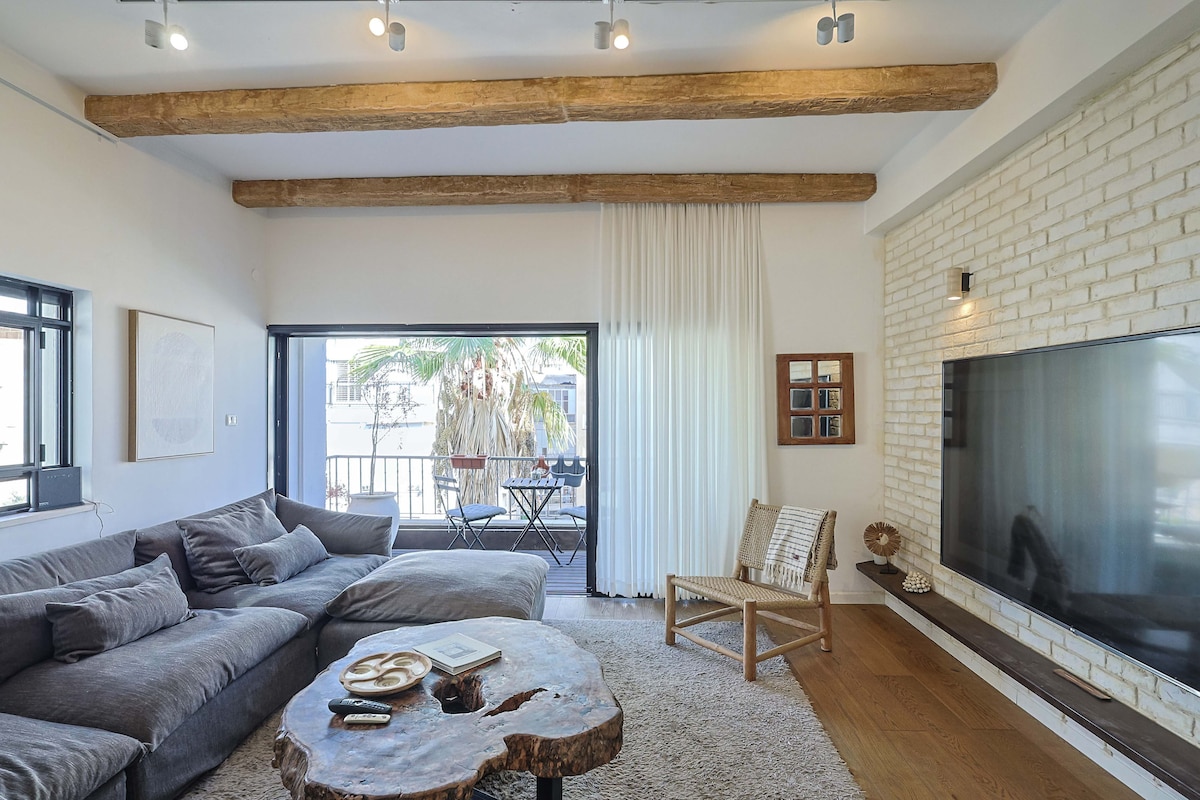 Un appartement loft de 40 m², à deux pas de la mer. Un espace ouvert, lumineux et agréable, avec de hauts plafonds et un design urbain moderne. Idéal pour les couples, les travailleurs à distance ou les personnes à la recherche d'une combinaison parfaite de confort, de style et d'un emplacement gagnant. L'appartement est équipé d'un lit double de qualité, d'un salon confortable, d'une kitchenette complète, d'une connexion Internet haut débit et d'un système de climatisation. En deux minutes de marche, vous atteindrez la promenade, la plage et les restaurants locaux, tous au cœur de l'atmosphère de Tel Aviv.