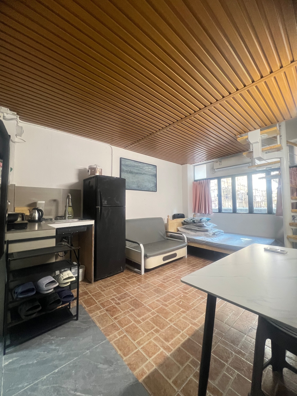 Tout le groupe disposera de suffisamment d'espace pour se reposer confortablement dans ce logement spacieux et unique. Sortie MTR Mongkok, centre-ville, emplacement idéal, excellent prix, travaux de loisirs et divertissements !En bas, ascenseur plat de la porte principale, adapté aux jeunes, notez que l'heure d'arrivée est 15 h ; L'heure de départ est 10 h ; Si vous avez besoin d'avance ou de retard, veuillez communiquer avec le propriétaire pour obtenir le coût correspondant ; 2 lits doubles sont situés dans le loft deux chambres, 1 canapé-lit de 1,2 m est situé dans le hall du rez-de-chaussée, les toilettes sont dans le hall, les voyageurs gênants et sales, exigeants ne sont pas adaptés.Le lave-linge et les placards sont dans le patio.