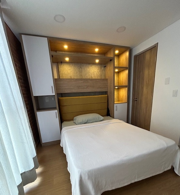 Profitez d'un appartement calme et central de 37 mètres avec tout ce dont vous avez besoin pour passer un séjour tranquille à Bogotá. Situé à quelques pas de l'ambassade américaine, des Corferias, du centre de congrès AGORA, du tribunal de Bogotá, du bureau du procureur général, du CAN, de la Gran Estación, entre autres. À 20 minutes de l'aéroport El Dorado, à 10 minutes du terminal de transport. C'est au 4ème étage. Le bâtiment dispose d'un ascenseur.