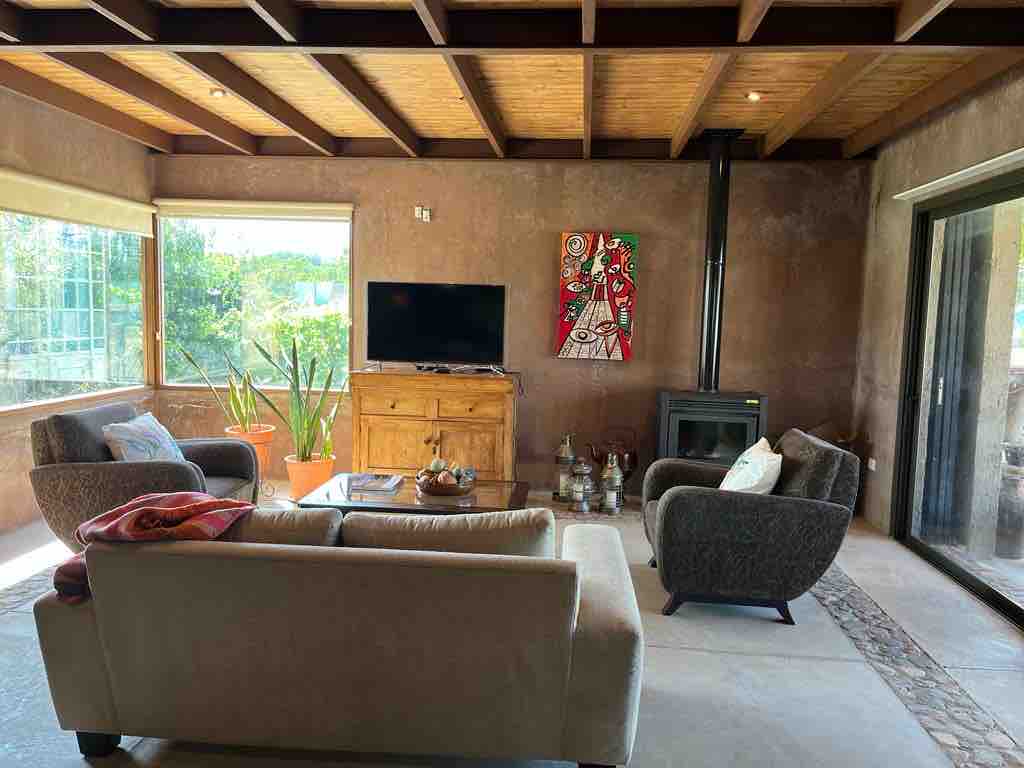 Maison moderne super spacieuse, avec cheminée, barbecue intérieur et barbecue extérieur. Jacuzzi sur la terrasse avec vue sur la montagne. Il dispose de 2 grandes chambres en suite à l'étage et d'un grand canapé-lit au rez-de-chaussée. Les lits et le fauteuil peuvent être assemblés en simple ou en double. À quelques pas de la cave Kaiken, environnement unique et calme, idéal pour des promenades en contemplant la cordillère des Andes. Smart TV dans les deux chambres et le salon, garage couvert pour 2 véhicules. Nous vous attendons !