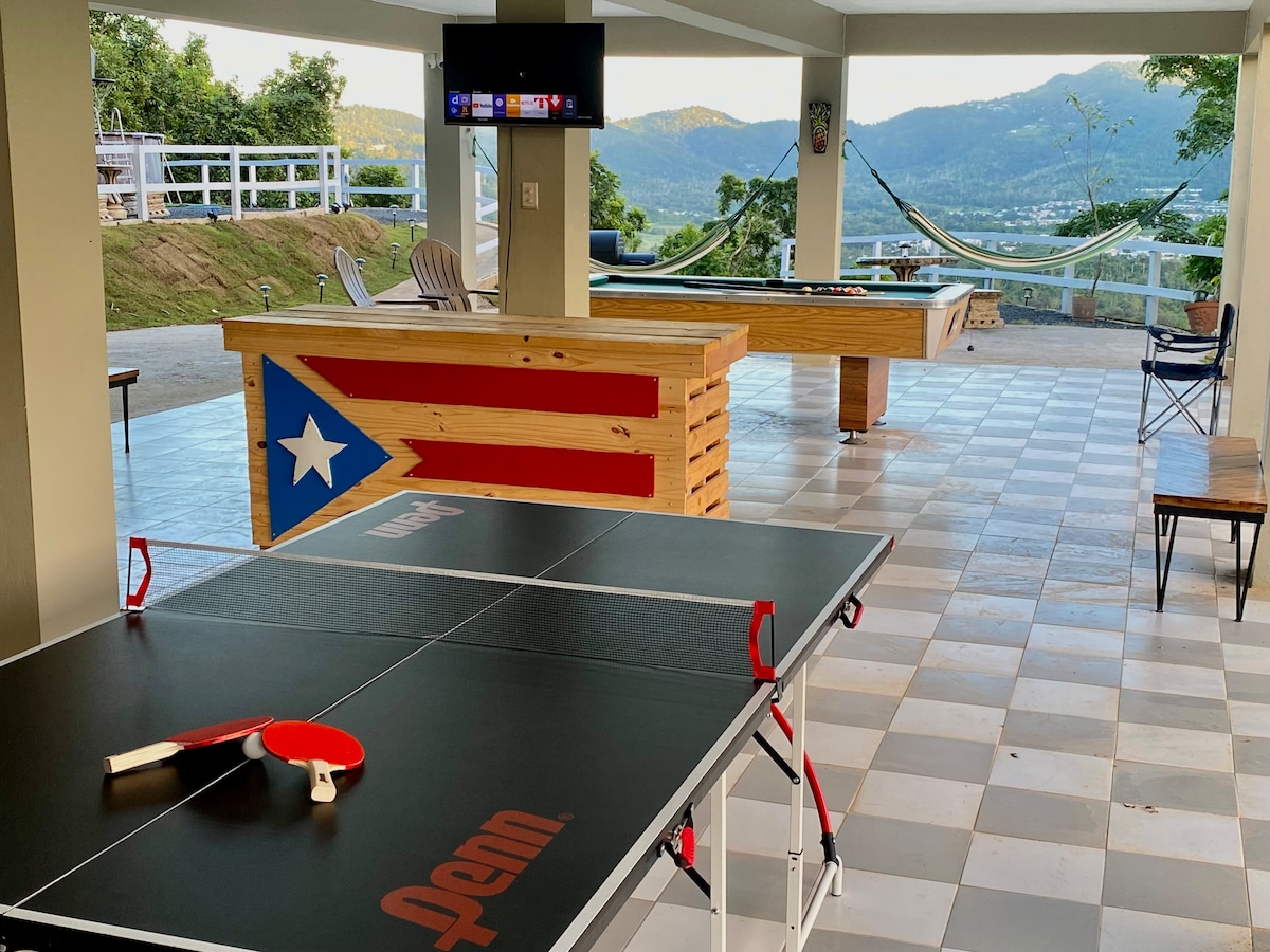 Private villa style mansion with panoramic mountain views, located on a 1.1 acre hill lot area, and in a gated community! Awesome location only minutes to main highway and just 9 mins to the Four Points Sheraton Hotel Golf & Casino! Only 12 mins to the popular Guavate culinary "pork highway", and just 25-30 min drive to San Juan area, beaches and airport. Plenty of local restaurants, shopping, and interesting venues (see guidebook) all within a 12 to 15 min drive. Uber Eats delivers to door!!