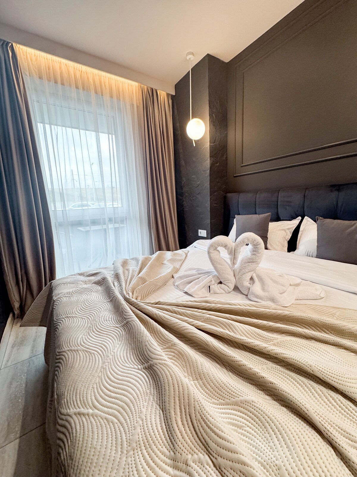 Appartement confortable et relaxant avec une superbe vue. Le logement a un design minimaliste et des détails élégants. Il dispose de tous les appareils et dispositifs que vous attendez chez vous. À 5 minutes à pied des commerces locaux et à 10 minutes de la gare routière locale. Nous offrons un stationnement gratuit sur place. Nous proposons également la climatisation moyennant des frais supplémentaires.
