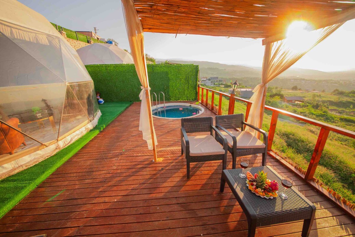 Dôme Glamping pour 2 personnes avec piscine chauffée et jacuzzi