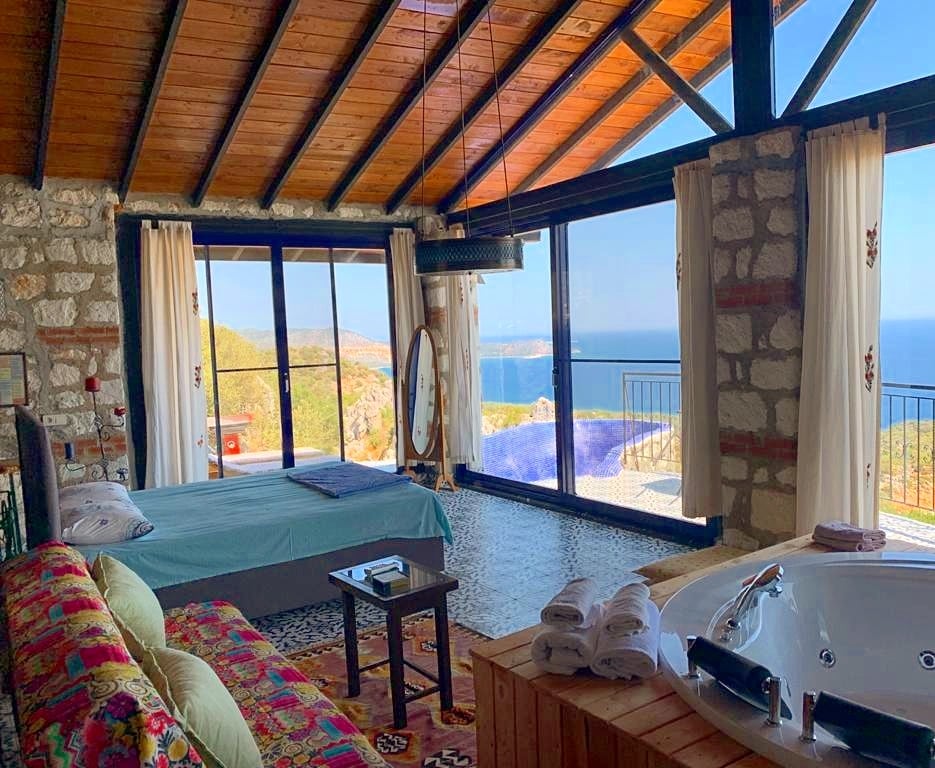 Kabak koyu manzarali havuzlu jakuzili taş ev
