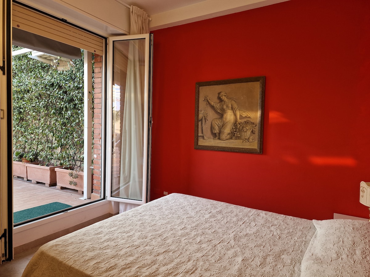 Penthouse entouré de verdure avec vue sur Milan. L’appartement est situé au huitième et dernier étage et se compose d’un espace ouvert avec cuisine et canapé-lit double (avec deux surmatelas pour assurer le meilleur repos possible), chambre avec lit double et fauteuil-lit et une salle de bain. L’appartement bénéficie d’une vue panoramique spectaculaire sur le Duomo et le centre-ville, qui peut être apprécié de la fenêtre en arc accessible en sirotant un verre de vin.