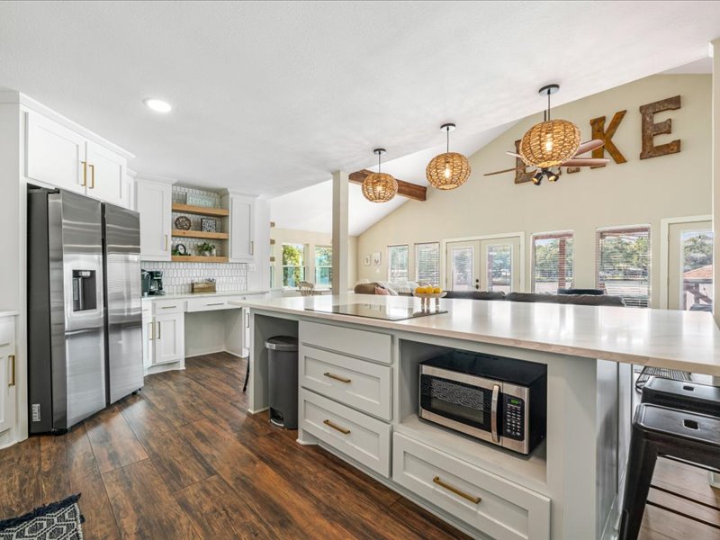 Location de bateaux et de jet-skis ! L'oasis de l'île est entourée d'une vue panoramique sur 3/4 d'acre sur l'île dans une communauté fermée. Le lac de 365 acres offre une excellente pêche, kayak, navigation de plaisance et baignade ! Maui Mat, 2 kayaks et 2 SUP sont disponibles pour votre aventure avec des gilets de sauvetage. Vous adorerez l'immense cuisine de chef gastronomique pour les repas en famille ! Ce logement offre une superficie de 2 229 m², plus 3 chambres et 3 salles de bain, ce qui permet d'accueillir facilement jusqu'à 12 personnes. Escaliers de la chambre du loft raides. Animaux acceptés !