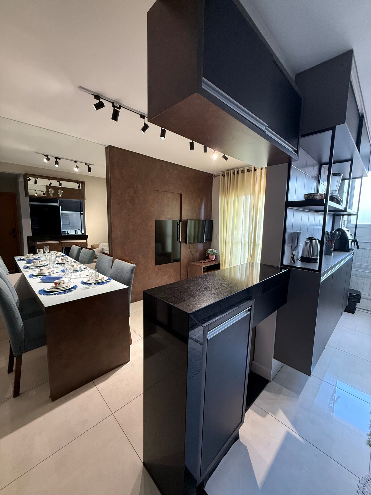 Que ce soit pour les loisirs ou les affaires, détendez-vous dans cet espace très confortable et élégant ! Appartement neuf et planifié pour offrir le meilleur séjour d'Uberlândia. Nous sommes situés dans la principale région hôtelière de la ville, à 300 mètres du centre commercial et à proximité des 2 avenues principales de la ville. L'accès à l'aéroport est très facile (6,5 km) , ainsi qu'aux attractions touristiques et aux agences publiques. La région est très sûre et dispose de supermarchés, banques, pharmacies, restaurants, commerces et tout ce dont vous avez besoin !