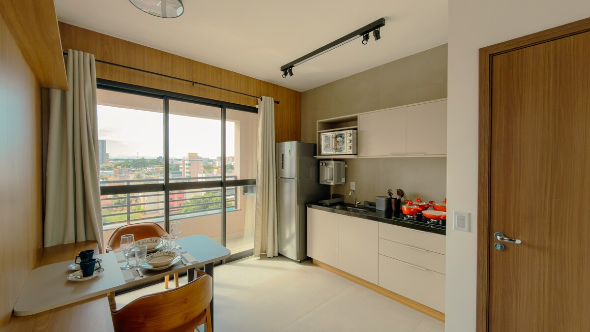 Studio moderne avec balcon et emplacement stratégique dans la ville ! Il est proche des principales voies d'accès de la ville. Découvrez le charme du Lotf Unique, décoré avec élégance et pensé dans les moindres détails pour vous offrir confort et praticité pendant votre séjour.