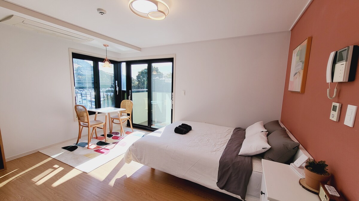Il est situé à 5 minutes à pied du port de Tianjin, Udo. C'est la chambre 201 au deuxième étage d'un bâtiment de deux étages. Le sommet Seongsan Ilchulbong, classé au patrimoine mondial, offre une vue pittoresque. Ce logement est propre comme un bâtiment neuf et donne une sensation d'ouverture grâce à la hauteur du sol. ⚠️Il y a un purificateur d'eau Apportez votre brosse à dents et votre nettoyant pour le visage.