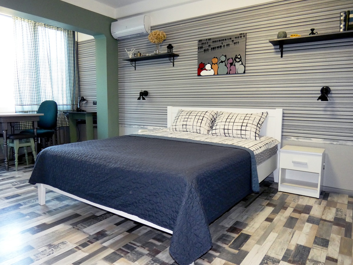 Appartement confortable avec rénovation chic dans la nouvelle maison construite et construite en tenant compte de l'apparence historique d'Odessa . Entrée de la chambre, l'ascenseur fonctionne avec une puce. À proximité se trouve le Central Park nommé d'après Shevchenko, Musical Comedy Theatre, Langeron Beach, Nemo Dilfinary,Railway Station, Odessa Film Studio, Filatov Ophthalmological Clinic. Vous pouvez voir la mer depuis la fenêtre de l'appartement. Et ceux qui souhaitent s'amuser toute la journée peuvent nager dans la mer du matin et cela prendra 15 minutes.