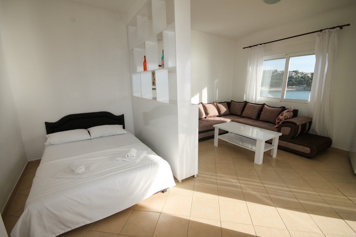 « Spacieux appartement d'une chambre situé à Uvala Paljuškovo à Bar, à quelques pas de la plage de pierre où vous pourrez sentir l'eau et entendre les vagues depuis votre salon ! Situé sur la plage dans le meilleur emplacement, dans l'emplacement le plus important du pays, c'est l'un des meilleurs choix parmi les voyageurs Airbnb qui décident de visiter le Monténégro.