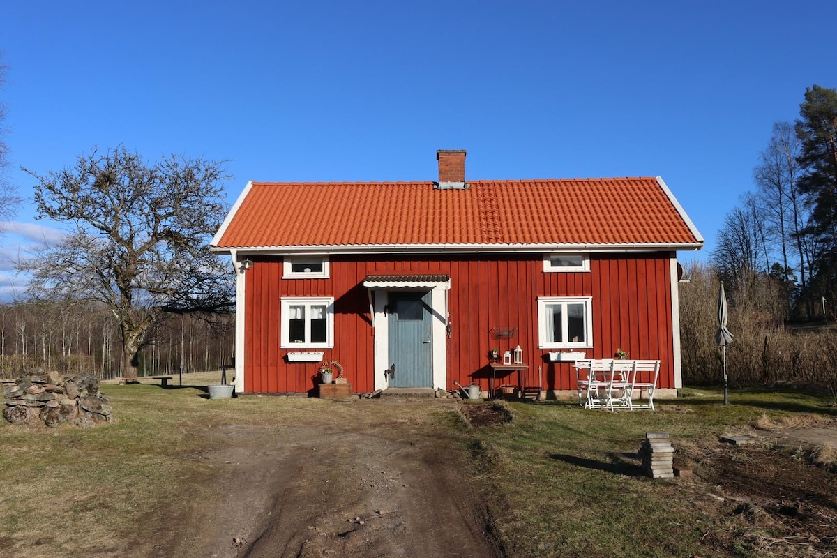 Une petite maison dans un endroit isolé sans voisins à proximité. Salle de bain nouvellement construite, cuisine récemment rénovée. Prenez le petit déjeuner au soleil du matin sur la terrasse juste à l'extérieur de la cuisine, ou passez une nuit confortable devant la cuisinière carrelée. Cuisine au rez-de-chaussée, salle de bain, salon et couloir. Salon équipé d'un lit de 120 cm et d'un canapé-lit. À l'étage, deux chambres avec 3 lits au total. Dans notre maison, vous pouvez vous détendre et vous détendre. À deux kilomètres du lac de baignade le plus proche, plusieurs sont disponibles dans les alentours. ICA Gällstad à 3 km. Ulricehamn 15 km.