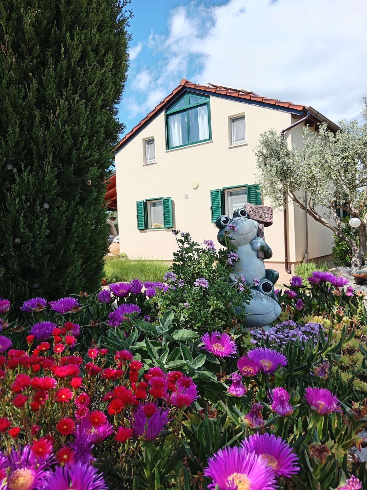 Casa immersa nella natura con due ampie stanze matrimoniali attigue, grande soggiorno con angolo cottura, veranda, bagno e giardino esclusivo per un'esperienza stravagante. Necessario automezzo per poter raggiungere il centro di Trieste in 15 minuti. Luogo sempre silenzioso e rilassante. Pista ciclabile a pochi minuti per raggiungere la città per chi è allenato! Passeggiate e sentieri nei boschi immediatamente a due passi da casa. Possibilità di fare fuoco e grigliate. Wellness a solo 1 km!!!