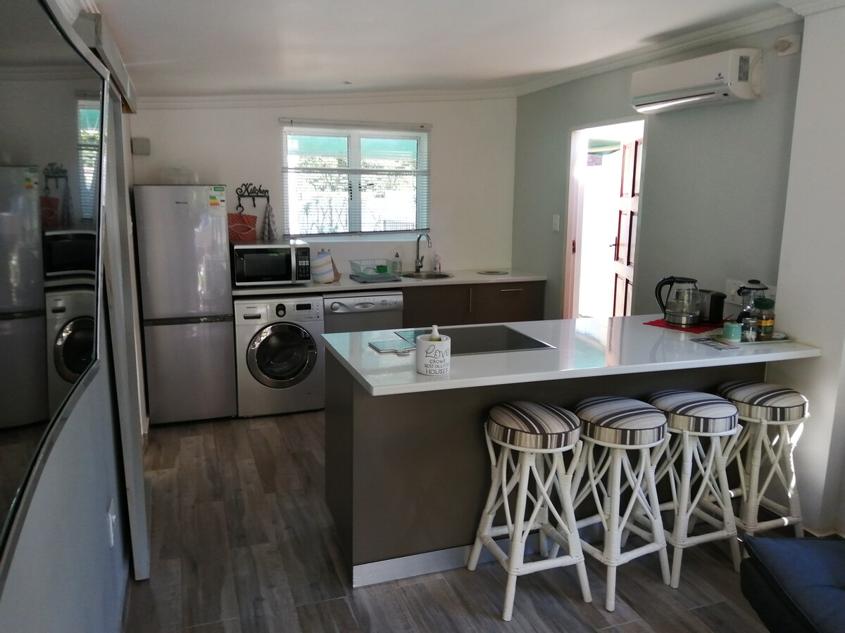 Pour vous accueillir dans notre monde, notre décor est neutre et glamour, dans un environnement privé et paisible à Cowies Hill avec une grande terrasse donnant sur une réserve naturelle. Caractéristiques : climatisation avec chauffage, grande télévision avec bouquet DSTV complet, ligne WiFi 40 még non plafonnée, utilisation d'une piscine et d'un espace de travail. La cuisine indépendante dispose d'un réfrigérateur, d'un four à micro-ondes, d'une machine à café, d'une bouilloire, d'un grille-pain, d'une friteuse, d'une plaque de cuisson à induction, ainsi que de toute la vaisselle et des couverts. La chambre dispose d'un lit double confortable et d'une armoire.