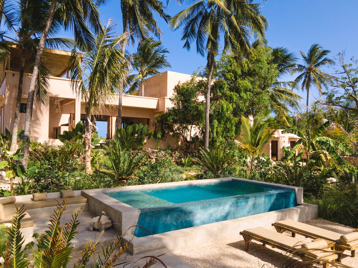 Karibu dans notre Dolphin Paradise Dream Villa, située directement sur la magnifique plage de Jambiani, avec une vue imprenable sur l'océan Indien turquoise. Venez vous détendre, jouer, vous relaxer et rêver en famille ou entre amis. La maison dispose de 3 chambres, de 3 salles de bain, d'un salon, d'une cuisine entièrement équipée avec espace de divertissement, d'une plage et d'une piscine privées, ainsi que d'un immense espace de détente extérieur ombragé sur la plage. Dans un quartier calme, à proximité de nombreux restaurants, bars et spots de kitesurf à Jambiani ou à Paje. Réveillez-vous et endormez-vous au son de l'océan.
