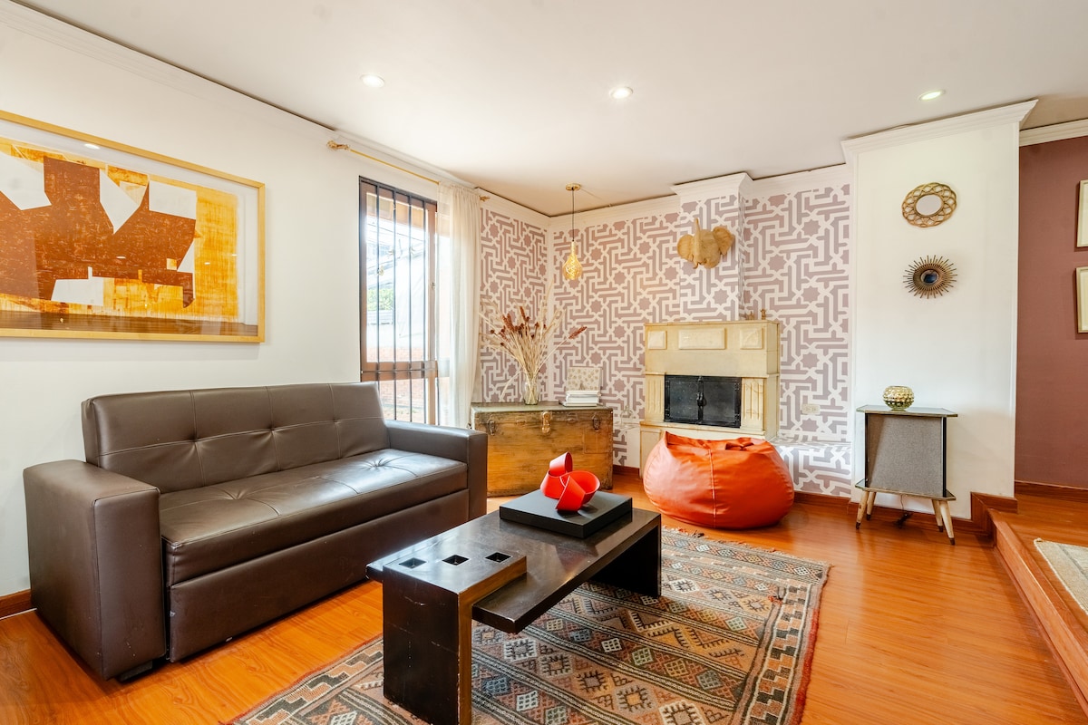 Nous sommes Patricia et Pablo, des voyageurs passionnés qui ont créé une retraite confortable, romantique et rustique au cœur de La Candelaria. Xia Xue House est à quelques pas de la Plaza de Bolívar, des musées Botero et de l'Or, et de Monserrate. Profitez de la cheminée, de la vue sur le toit, du Wi-Fi rapide, des divertissements, d'une cuisine entièrement équipée et d'un lave-linge et d'un sèche-linge. Arrivée autonome, parking gratuit et animaux acceptés. Un espace chaleureux et charmant conçu pour que vous vous sentiez comme chez vous à Bogotá. Détails de l'enregistrement 110692